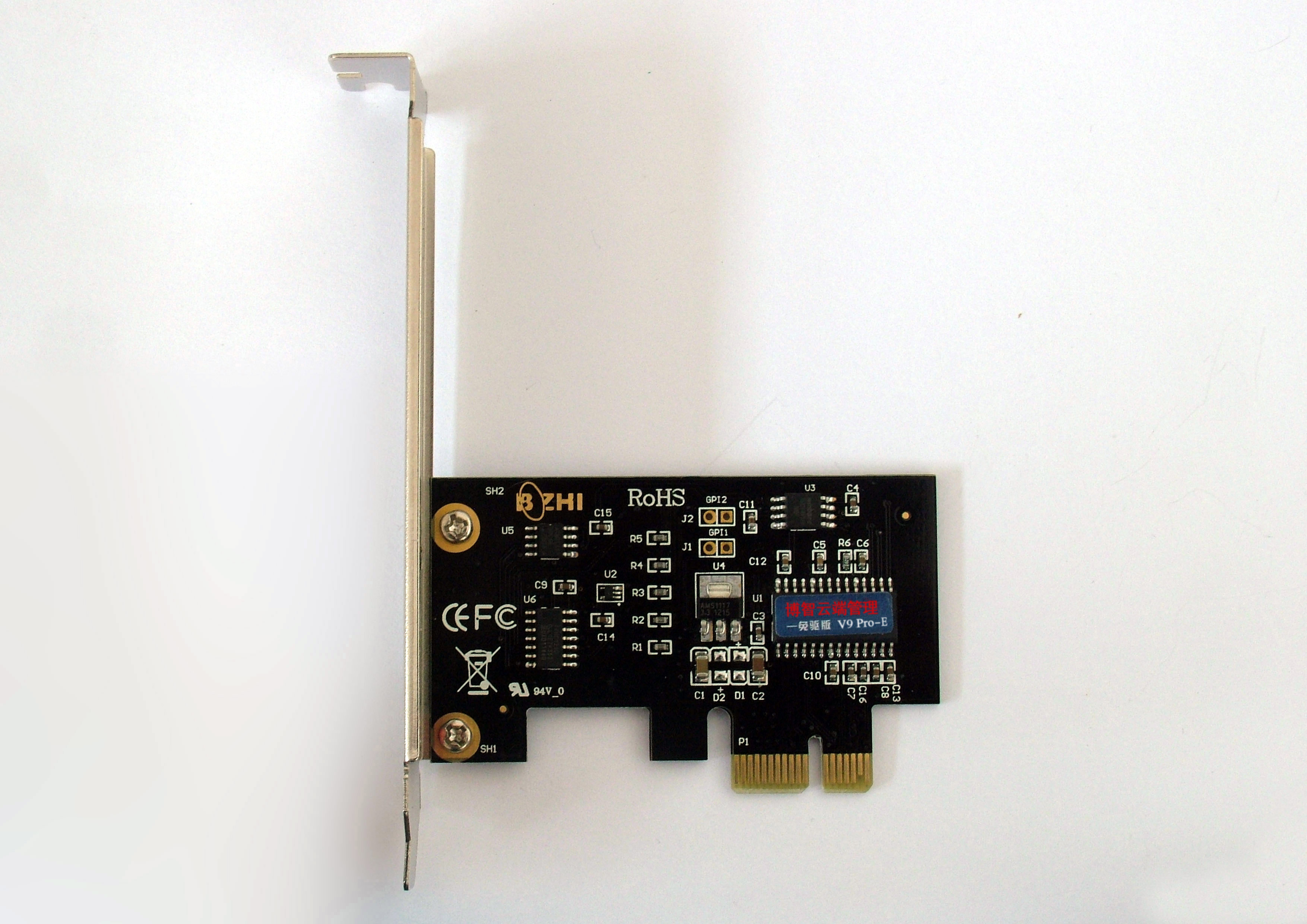博智云端管理卡V9 Pro-E(PCI-E)是青岛博易科技有限公司研发的新一代具有防病毒能力的免驱版保护卡。其核心技术依托公司自主设计的“BOZHI YUN芯片”,真正做到了免驱动盘安装和纯硬件底层保护,可以有效的防止“机器狗”和各种木马病毒对电脑系统的破坏。