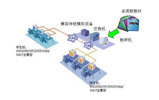 某校新近更新了一批计算机硬件设备,需要软件作相应更新,希望采用纯软件的集语音教室、多媒体教室、考试中心等多功能合一的专业教学环境语音教学产品,最大限度地简化学校采购、排课、使用、维护及升级工作,来实现语音教学方法的多样化、个性化,以及能充分体现出新概念、新标准、新手段、新内容等教学特点。