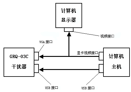 1 when the "GRQ-03C computer related interference" and the protection of computer connection, the video signal cable plug and plug in the video signal cable plug and plug in the special video adapter cable DB15 head, the special video adapter cable, the other DB15 head inserted in the computer graphics card, special video adapter cable USB head inserted in the VGA interface, and then connected to the computer USB interface and interfering with USB.